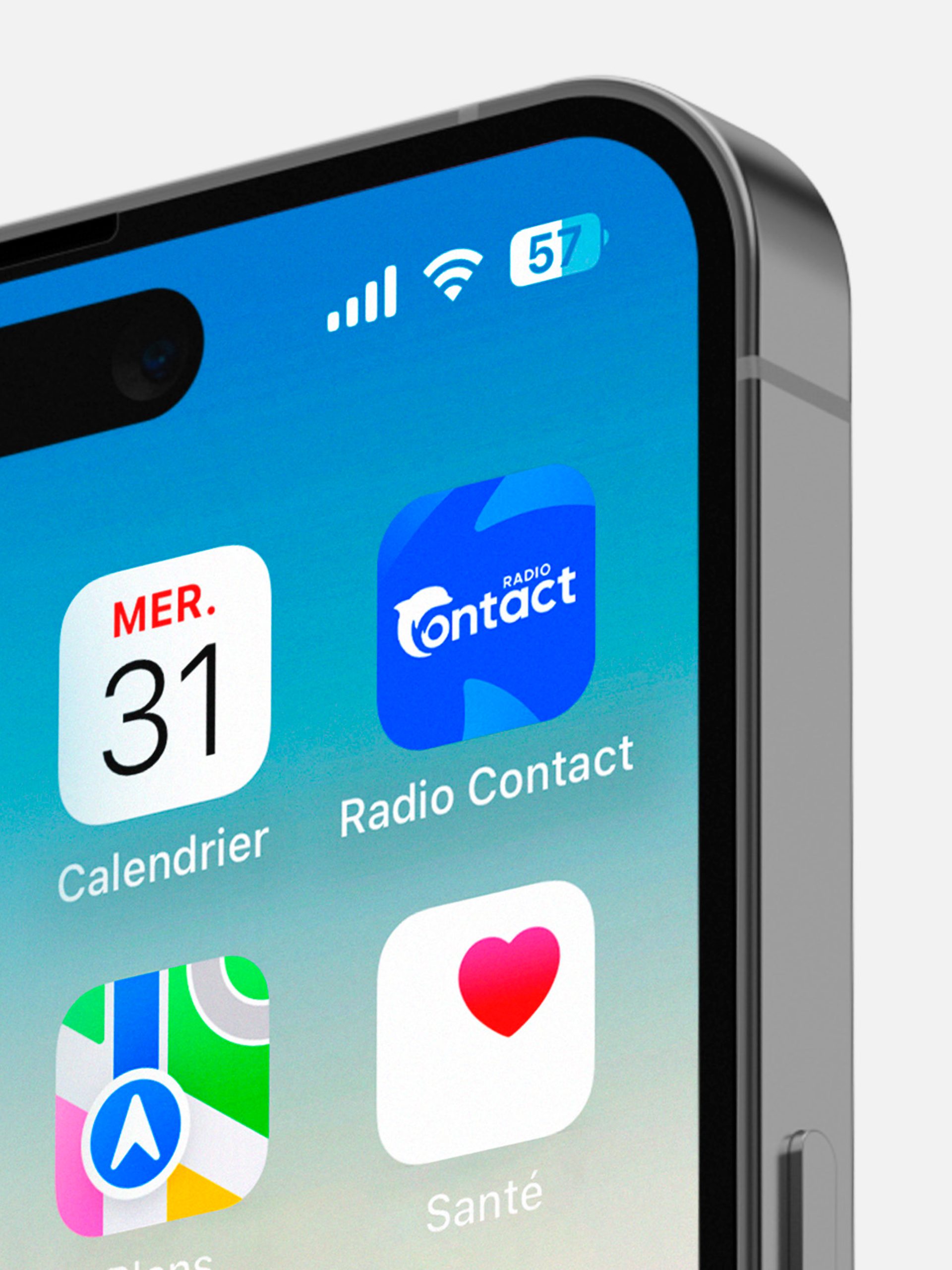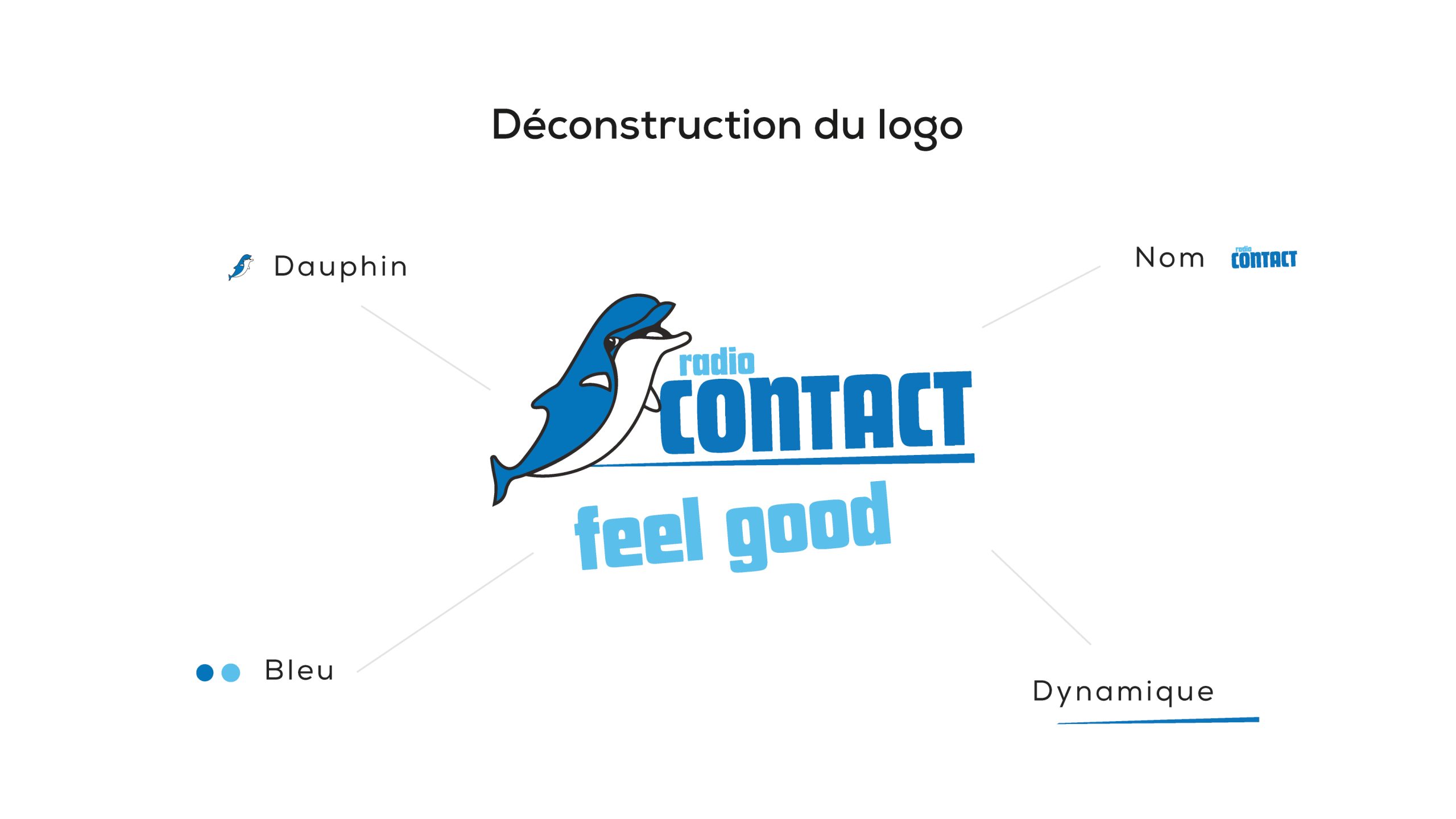 Le dauphin Contact faisant partie intégrante voire indissociable de Radio Contact, cela nous a poussé à l’intégrer totalement dans le logo, pour ne faire plus qu’un avec le nom de la marque.